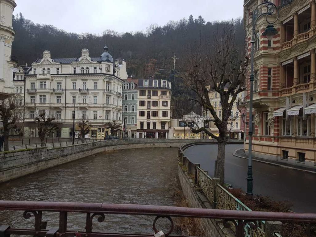 Kente ulaştıktan sonra Mustafa Kemal Atatürk’ün de bir ara kaldığı Carlsbad Plaza’yı görüyoruz. Daha sonra tarihi kentin sokaklarında yürüyoruz. Kentte kaplıcaların yanı sıra alışveriş yapabileceğiniz yerler mevcut. Hediyelik eşya satan yerlerden hediyeler almanız mümkün. Ayrıca hatıra para alabileceğiniz bozuk para ile çalışan makineler de bulunmakta. Bir süre gezdikten sonra birşeyler yiyip biraz dinleniyoruz. Kentin sokaklarında fotoğraflar ve videolar çekerek gezmeye devam ediyoruz. Şehrin içinden bir nehir geçmekte. Nehrin iki yakasında yürüyebileceğiniz, alışveriş yapabileceğiniz, döviz bozdurabileceğiniz yerler mevcut.